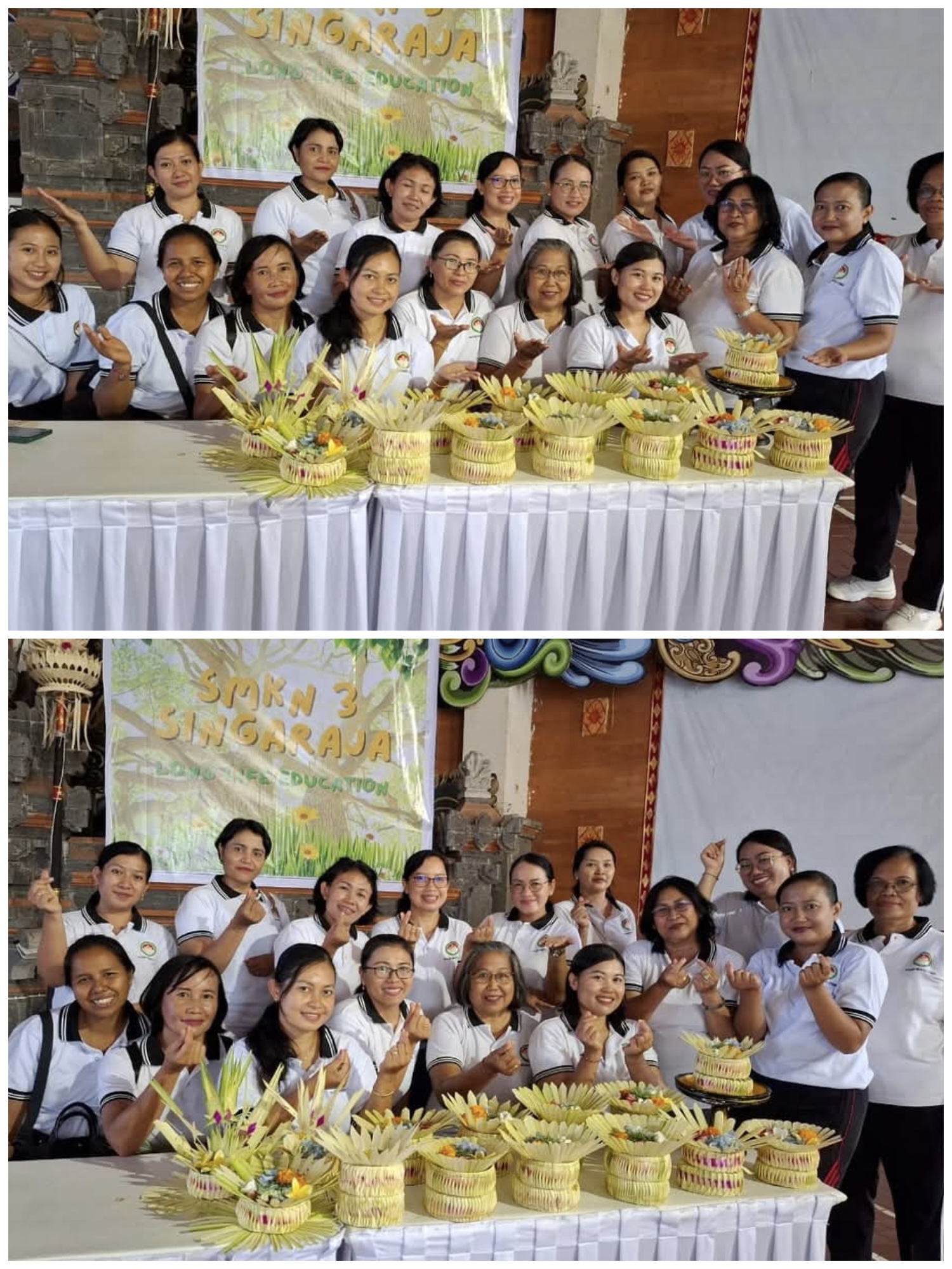 Minggu, 8 Desember 2024, Dharma Wanita Persatuan SMK Negeri 3 Singaraja melaksanakan kegiatan senam, arisan dan kegiatan membuat canang gebogan di Aula SMK Negeri 3 Singaraja. Acara dimulai dengan senam bersama yang diikuti oleh seluruh anggota, dilanjutkan dengan doa, menyanyikan Mars dan Himne Dharma Wanita Persatuan, penyampaian laporan dari bendahara, dan pengarahan dari ketua Dharma Wanita Persatuan SMK Negeri 3 Singaraja. Kegiatan dilanjutkan dengan membuat canang gebogan sebagai salah satu program Dharma Wanita dari bidang pendidikan. Acara rutin ini diharapkan dapat meningkatkan rasa kekeluargaan dan kekompakan seluruh anggota Dharma Wanita Persatuan di SMK Negeri 3 Singaraja.